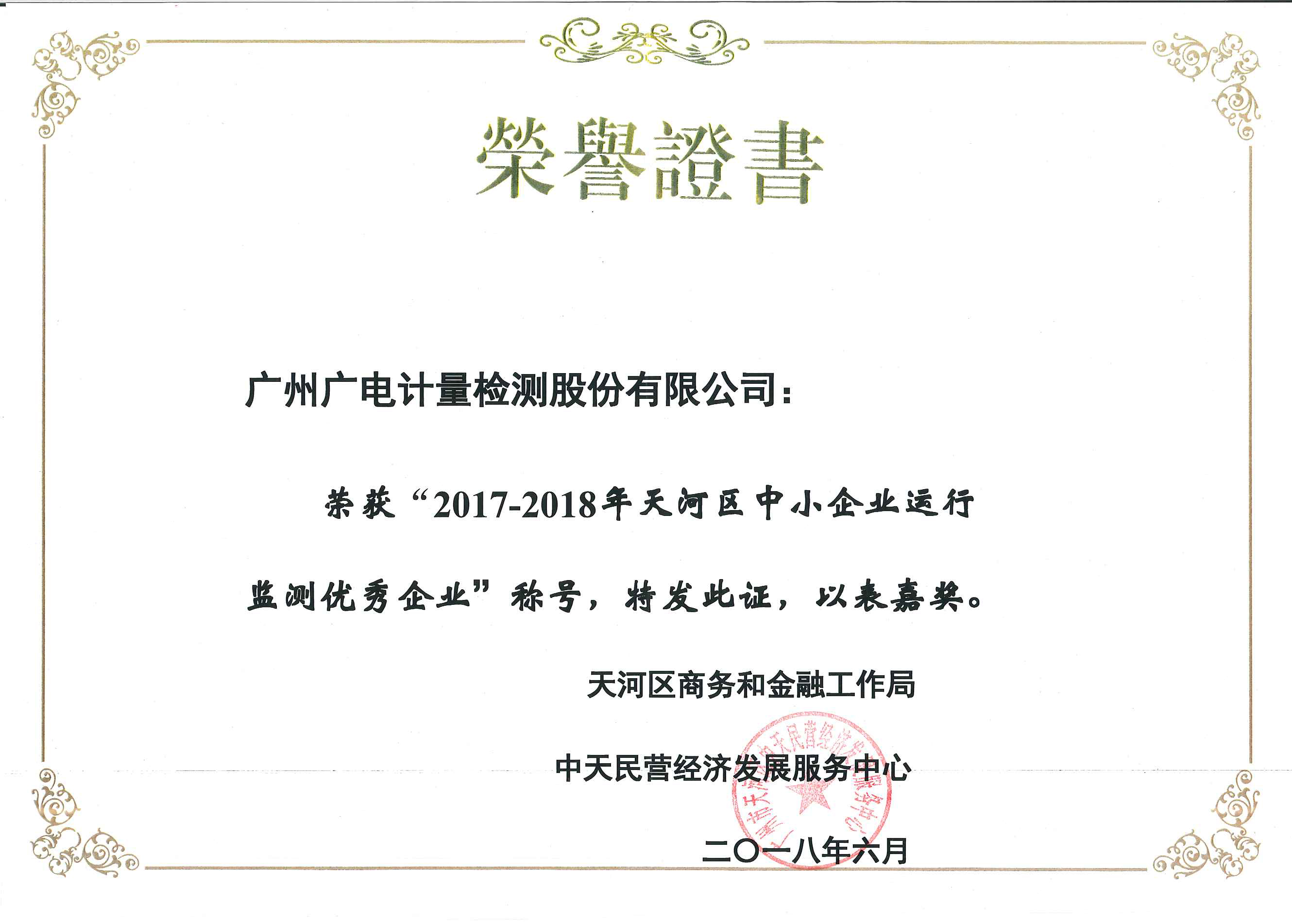2017-2018年天河区中小企业运行监测优秀企业