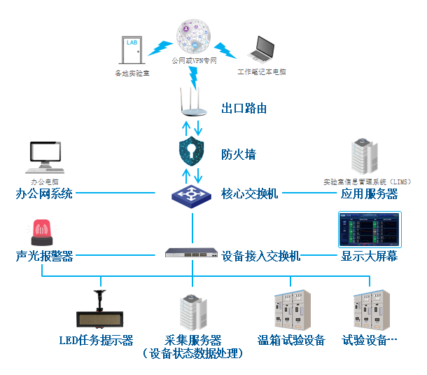 • 提升管理效能:实验室管理人员可随时掌握设备使用状况,支撑异地手机实时查询;测试工程师不用到设备现场即可查看运行状态;试验委托部门不用联系测试工程师即可掌握试验进度信息。