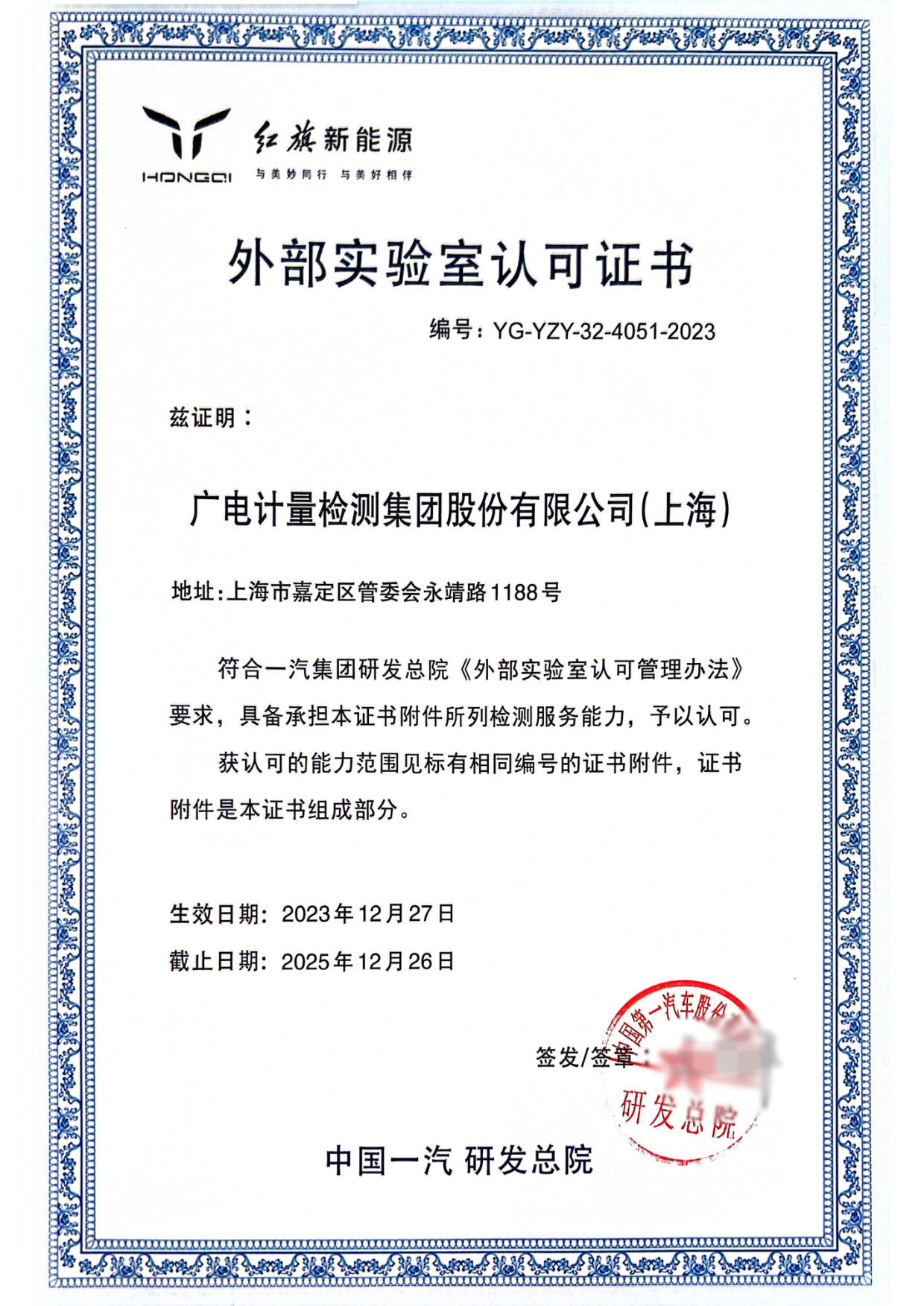 开云实验室获红旗新能源外部实验室认可