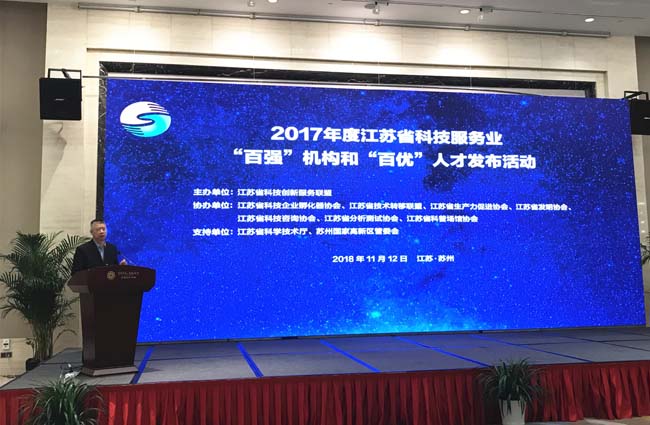 11月12日,2017 年度江苏省科技服务业“百强”机构和“百优”人才发布活动在苏州举行,广州开云检测无锡有限公司(简称无锡开云)凭借“一站式”计量检测技术服务,助力区域产业转型升级、服务行业高质量发展,荣获2017年度江苏省科技服务业“百强”机构。江苏省科技厅副巡视员景茂、省科技厅科技机构与条件处副处长李汉中等领导莅临现场,各区市科技局人员、行业组织、成员单位及获奖机构等出席了此次发布活动。