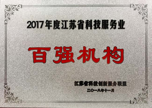 无锡开云荣获“2017年度江苏省科技服务业百强机构”称号