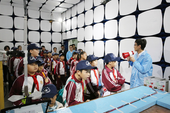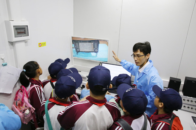 随后,小记者团来到计量校准、电磁兼容检测、化学分析、可靠性与环境试验等实验室,观看了纺织品检测、车载导航抗辐射电磁干扰试验、汽车座椅测试等过程演示。面对陌生的仪器设备,孩子们化身“好奇宝宝”,纷纷举手与技术人员交流互动。
