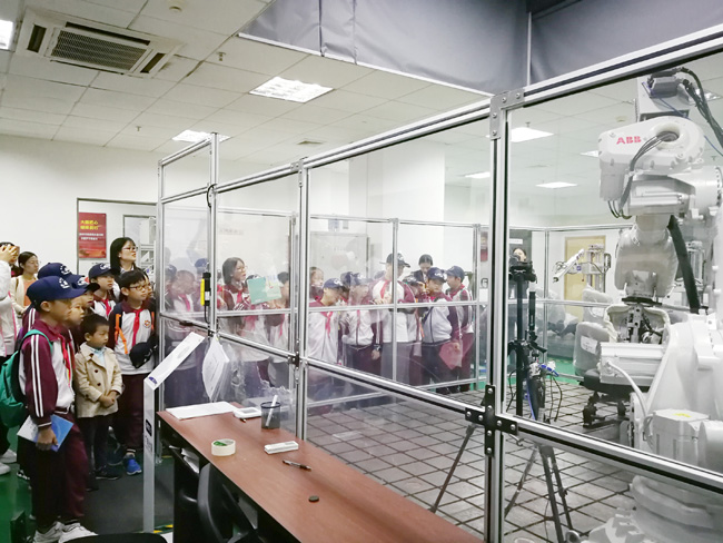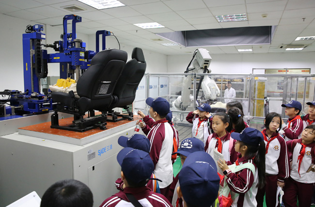 “原来可以用机器人来做测试!”“真酷!”在观看汽车座椅测试时,孩子们对各种设备产生了浓厚的兴趣,不时一边提问一边记录。