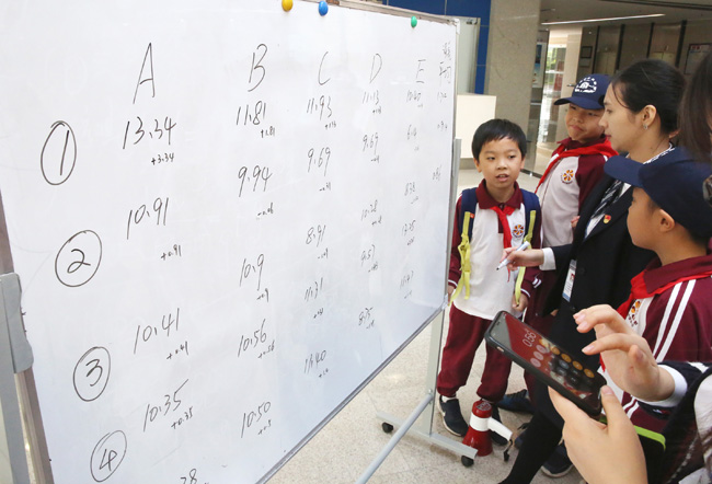 默数10秒,谁的时间最准?在“谁是时间超人”游戏环节,小记者们分组竞赛,表现不俗。