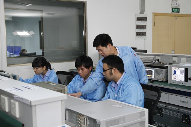 李明芳在计量中心电子实验室进行实操指导
