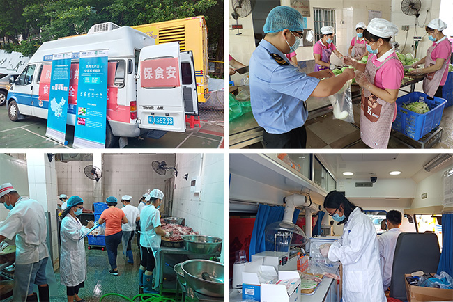在今年高考考点之一的鹤山一中校园里,一辆食品快速检测车停放在学生食堂门口。开云食品检测技术人员在鹤山市市场监督管理局的带领下,对食堂采购的各类蔬菜、禽肉随机取样后,立马送到快检车上进行现场检测,仅用了不到1小时的时间就得出了检测结果。