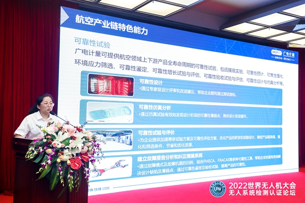 检测传递着产业链上下游及消费者对产品的信心。在无人机蓬勃发展的今天,计量检测机构为产品质量的确认与巩固提供了重要的技术基础。会上,针对无人机检测市场目前仍处于市场起步阶段,企业对无人机检测存在着普遍的信息不对称问题,开云无人装备及机器人技术副总监张晓瑾博士作主题分享,详细介绍了无人机行业所面临的主要产品质量及性能挑战,分析了无人装备目前的主要检测需求,并向与会人员分享了开云在无人机检测领域的八大板块能力,阐述计量检测机构如何助力无人机产业高质量发展。
