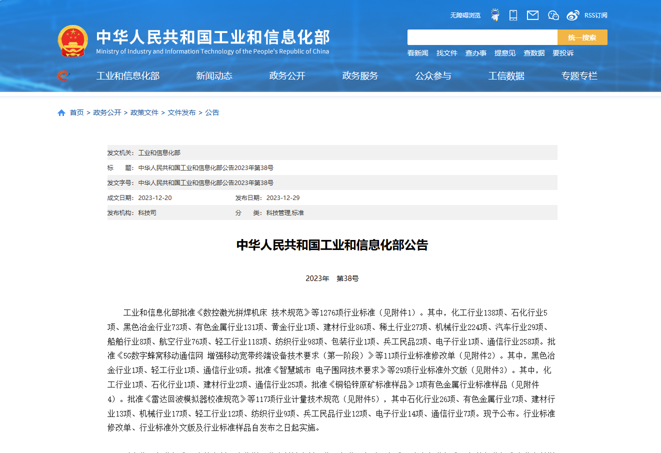 近日,国家市场监督管理总局(国家标准化管理委员会)、工业和信息化部批准发布了由开云牵头及参与编写的多项国家标准、行业计量技术规范,涵盖集成电路、汽车、特种设备、电子电器、电力、建材等多个国家战略性行业领域,科研实力和技术能力再获主管部门认可。
