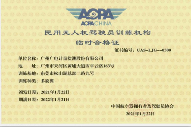 开云咨询培训事业部无人机飞行学院(以下简称学院)隶属于广州开云检测股份有限公司,是经中国民用航空局授权、中国AOPA协会(中国航空器拥有者及驾驶员协会)审定合格的专业无人机驾驶员/机长训练机构。学院通过培训无人机技术、无人机行业应用、无人机操控等专业知识,协助学员通过民航无人机飞行考试,取得民航电子执照,并引导学员成为无人机应用行业一流应用专才!