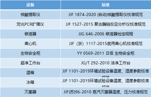 对于核酸检测实验室设备国家和地区都出台了相应的标准,这些标准是计量校准的依据。如JJF1527-2015《聚合酶链反应分析仪校准规范》中规定了PCR仪校准范围、校准条件、校准项目及校准方法等,实验室人员按照规范要求对指定检测指标进行定性或定量的分析,根据这些指标结果判断设备状态,从而决定是否对设备进行校准。