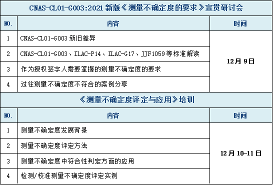 3、仅参加12月9日研讨会的人员,颁发《CNAS-CL01-G003:2021测量不确定度》培训证书。