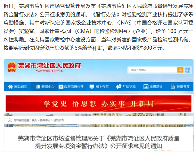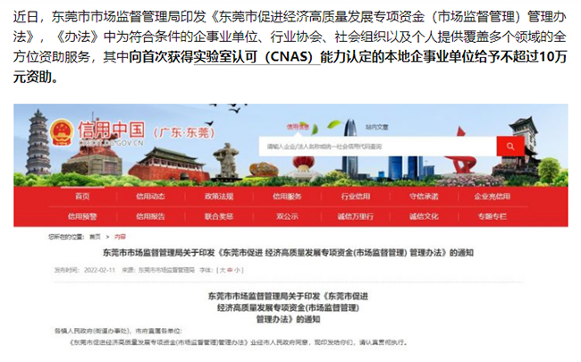 资讯中心行业新闻重磅利好!新通过CNAS、CMA认证至高可获100万元补贴!