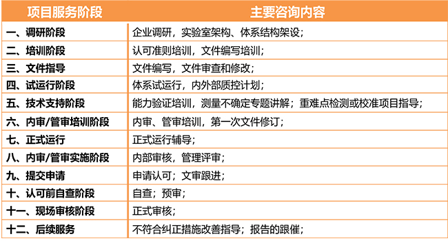 我们重点面向各行业企业、三方检测机构等自建实验室,提供全面专业咨询辅导服务及相关的培训课程,根据企业所处的行业、项目进度的不同特点,量身定制“专人、专案、专责”的个性化服务,贴合企业客户需求。具体服务流程如下: