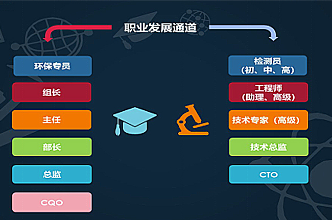 电气电子产品环保检测员大致分为管理岗位和技术岗位。首席质量官(CQO)和首席技术官(CTO)是电气电子产品环保检测员的职业发展方向。