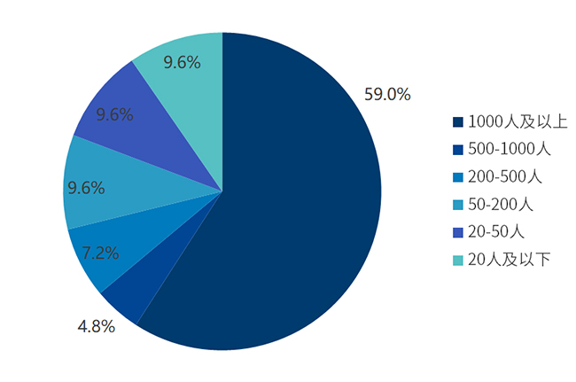 2. 【所在企业规模】特大、大、中、小、微型公司都需要电气电子产品环保检测员推动转型。按企业规模分析,电气电子、通信及其供应链企业呈现大型龙头企业为主,中小型企业为辅的格局。