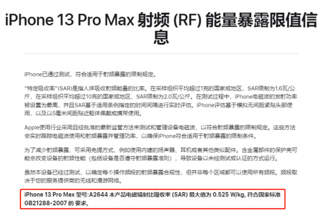 信息来源:https://www.apple.com/legal/rfexposure/iphoness14,3/zh-Hans/