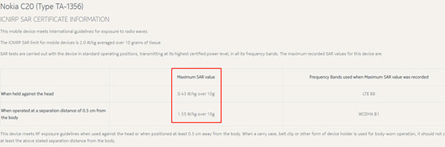 信息来源:https://www.nokia.com/phoness/en_int/sar