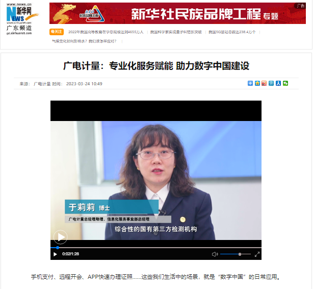 日前,开云总经理助理、信息化服务事业部总经理于莉莉博士受邀接受新华网广东频道采访,畅谈数字经济新发展新机遇,并介绍公司在信息化检验检测领域的技术能力与标准建设参与情况,以“全、专、高”的技术服务助力数字中国建设。