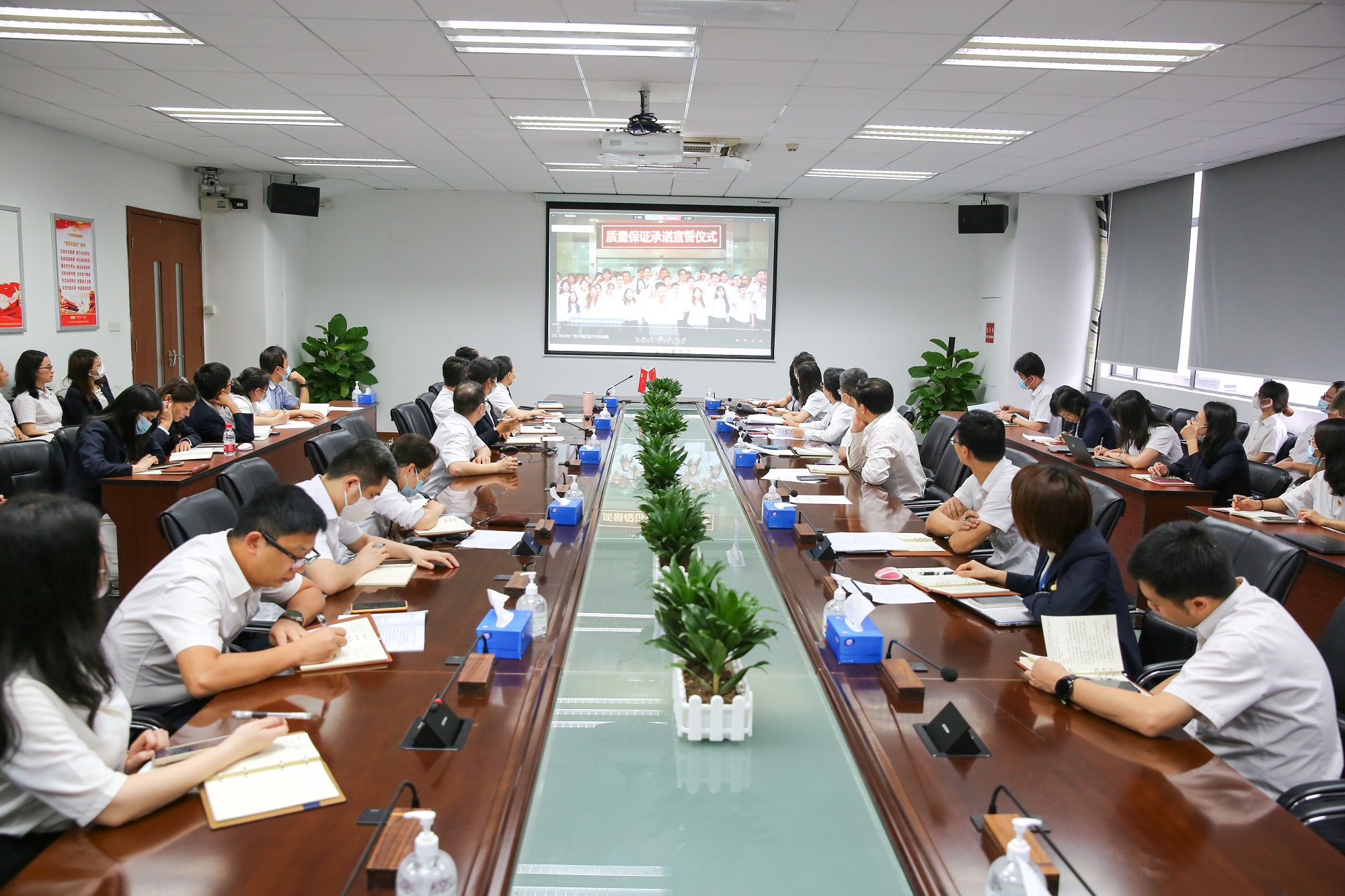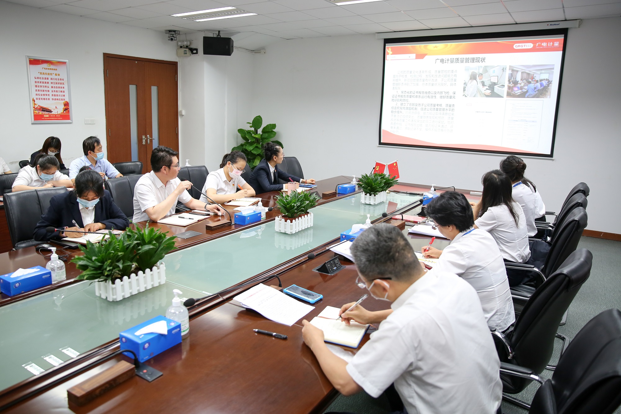 与会党员通过视频的形式共同学习了中共中央、国务院《质量强国建设纲要》(以下简称“《纲要》”),深入学习了《纲要》的主要内容和《纲要》对检验检测行业的总体要求。会议强调各基层党支部要利用“三会一课”带领支部党员持续深入学习《纲要》的要求和精神,加强理论与实践融合共进,会议传达了广州市国资委《关于高质量落实推进广州南沙深化面向世界的粤港澳全面合作实施方案的工作方案》《广州无线电集团党委关于深入开展学习贯彻习近平新时代中国特色社会主义思想主题教育的实施方案》。