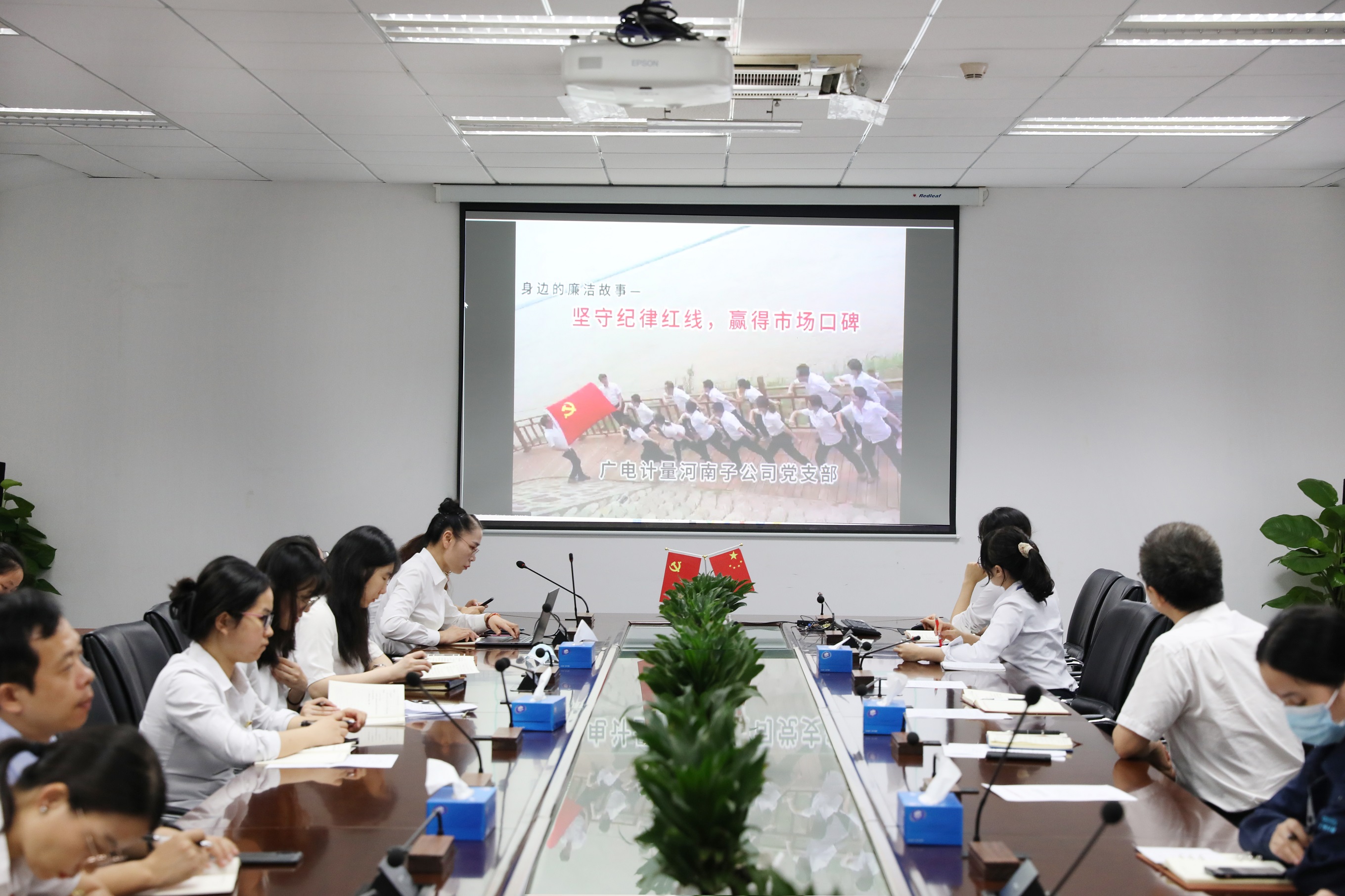 会上,全体党员共同观看了河南子公司党支部自制视频《坚守纪律底线,赢得市场口碑》和警示教育片《家声》,视频分别通过河南子公司一线人员的亲身经历和因家风不正,丧失理想信念,最终身陷囹圄的政党领导干部的惨痛历程,警醒全体党员干部树牢廉洁自律意识,把家风建设摆在重要位置,筑牢反腐倡廉的家庭防线。