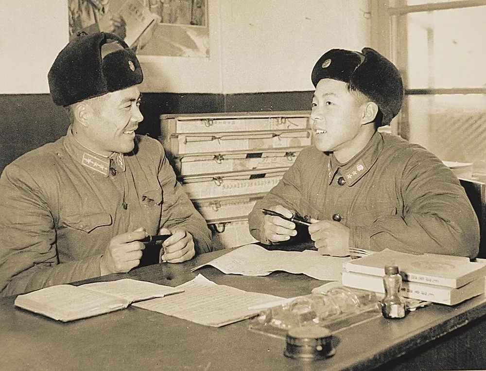 雷锋入伍后表现突出,得到组织的充分肯定。图为运输连指导员高士祥与雷锋谈话(张峻 摄)